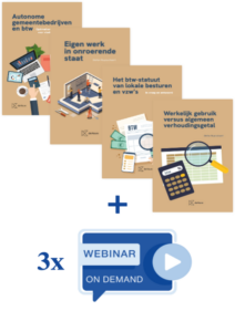 | Promopakket lokale besturen – Stefan Ruysschaert Boek Een helder zicht op btw binnen lokale besturen en vzw’s? Dit pakket is op maat samengesteld voor lokale besturen en biedt een uitzonderlijk voordelige totaalprijs. Het combineert vier praktijkgerichte boeken met drie webinars on demand van btw-specialist Stefan Ruysschaert. Dankzij de combinatie van heldere theorie, concrete voorbeelden en actuele regelgeving is dit pakket bijzonder geschikt voor medewerkers van steden, gemeenten, OCMW’s en vzw’s die met btw in aanraking komen. Dit pakket bevat: Boeken: