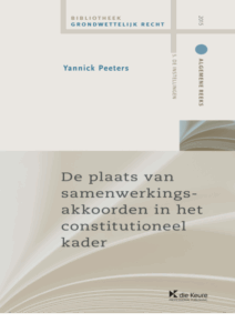| De plaats van samenwerkingsakkoorden in het constitutioneel kader Boek In dit boek verkent Yannick Peeters de grenzen en de mogelijkheden van samenwerking tussen de deelstaten en de federale overheid binnen het huidige grondwettelijk kader. Hij doet, waar dit een ongewenste belemmering vormt, de noodzakelijke aanbevelingen om het bestaande kader beter af te stemmen op de realiteit van samenwerking en samenwerkingsakkoorden.