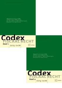 | Codex Fiscaal Recht 2025-2026 Boek, Codex Deze codex, ontstaan via interuniversitaire samenwerking, bestaat uit twee delen. Het eerste deel bestaat uit de inkomstenbelastingen, het internationaal belastingrecht en belasting over de toegevoegde waarde. Het tweede deel omvat de indirecte belastingen (registratie-, hypotheek- en griffierechten, successierechten en diverse rechten en taksen), de lokale en regionale fiscaliteit, de met inkomsten gelijkgestelde belastingen en ook het nieuwe wetboek van de minnelijke en gedwongen invordering van fiscale en niet-fiscale schuldvorderingen. De codex blijft daarmee het ideale instrument om de fiscale praktijkbeoefenaar en de met fiscaal recht geconfronteerde student te begeleiden bij zijn volledige praktijk respectievelijk studie. De samenstellers hebben gestreefd naar een optimale prijs-kwaliteitverhouding door o.a. een passende selectie (gebaseerd op hun praktijk- en doceerervaring) van bijzondere wetgeving en besluiten, precieze kruisverwijzingen, zeer nauwkeurige aanduiding van teksten, tekstonderdelen, zinsgedeelten of zelfs individuele termen die gewijzigd werden t.o.v. vroegere teksten, enz. Thans werden de teksten bijgewerkt tot het Belgisch Staatsblad van 10 juli 2025. Uitgangspunt voor de samenstelling van het deel I - Inkomstenbelastingen is de wetgeving die geldt voor het aanslagjaar 2026. 2025 Miguel De Jonckheere, Axel Haelterman, ... | €197 | |